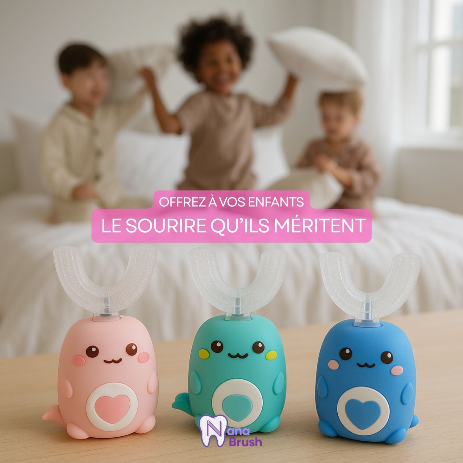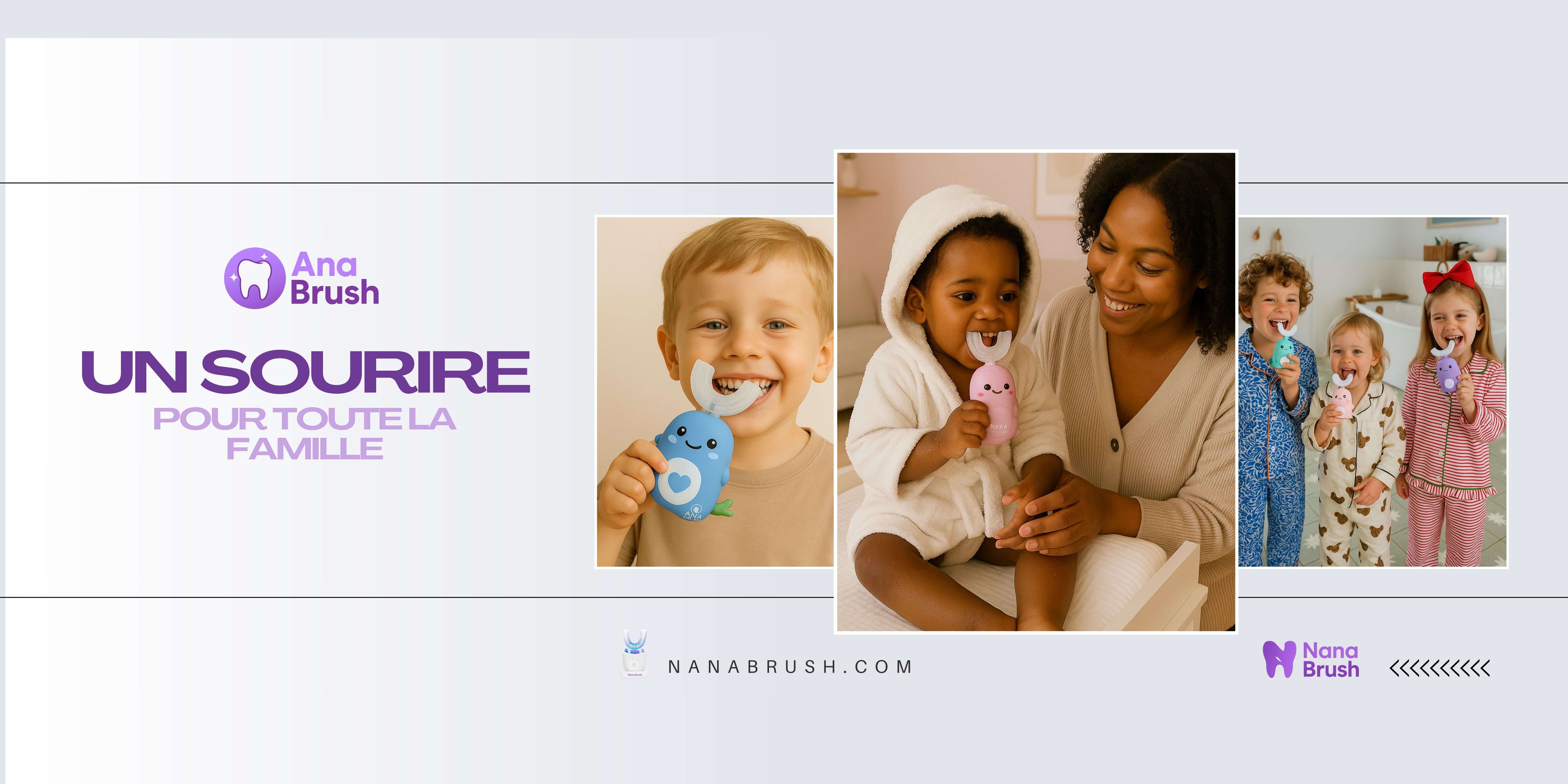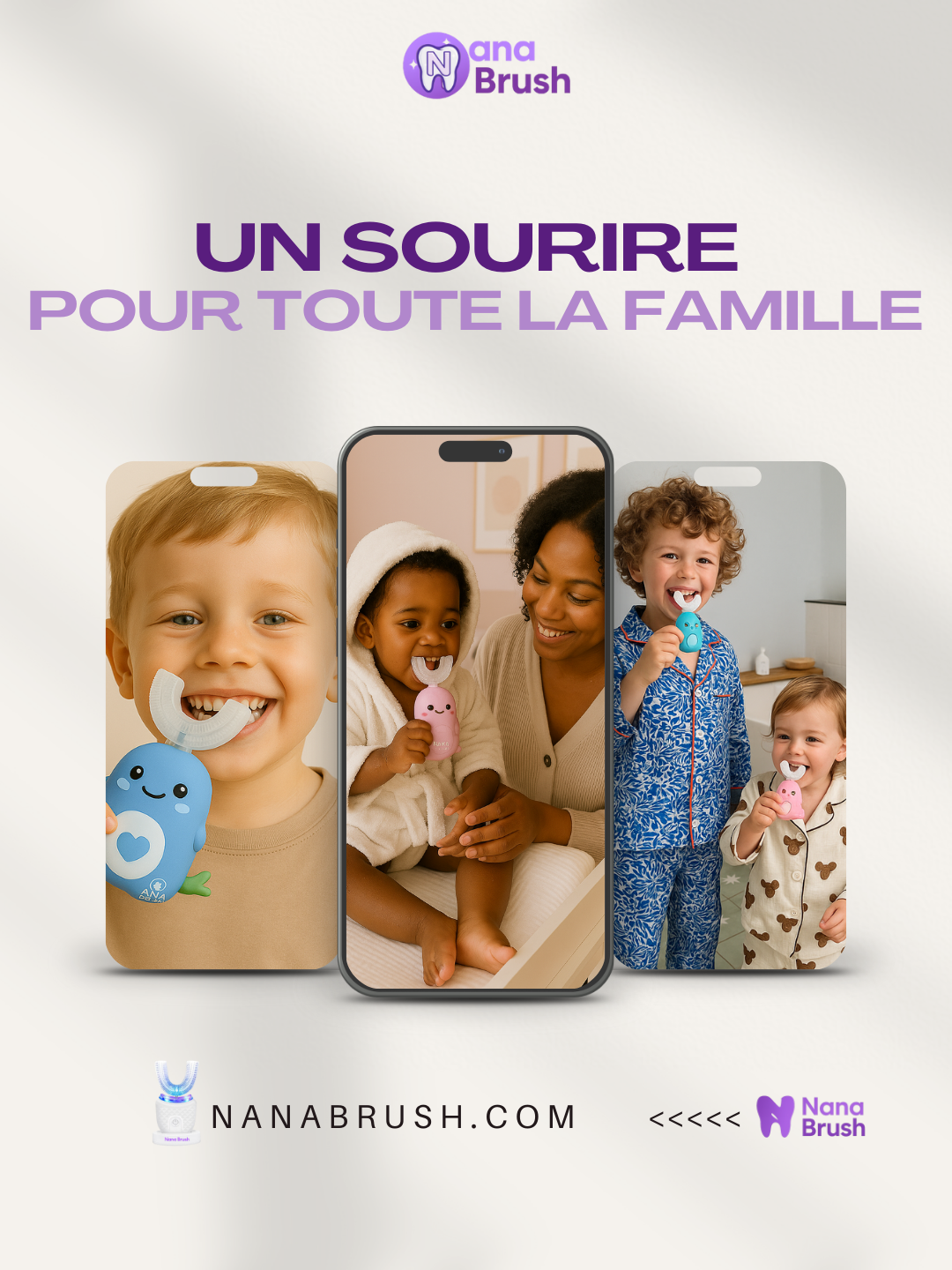 Fini les corvées de brossage manuel : avec Nana Brush, toute la famille sourient pendant que leurs dents sont nettoyées mieux et plus vite qu’avec une brosse classique.